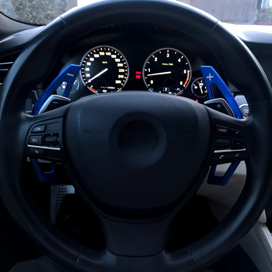 Performance Alu Schaltwippen / Paddles blau - passend für BMW F20 F21 F45 F22 F23 F46 F30 F31 F34 F32 F33 F36 F10 F11 F07 F12 F06 F13 X1 F48 X2 F39 X3 F25 X4 F26 X5 F15 X6 F16