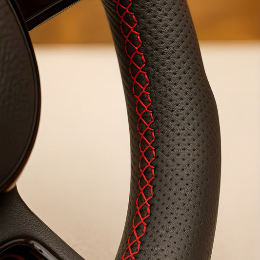 Performance Lenkradbezug - Leder glatt/perforiert + 12 Uhr Markierung rot - passend für BMW E60 E61 E62 E63 E64