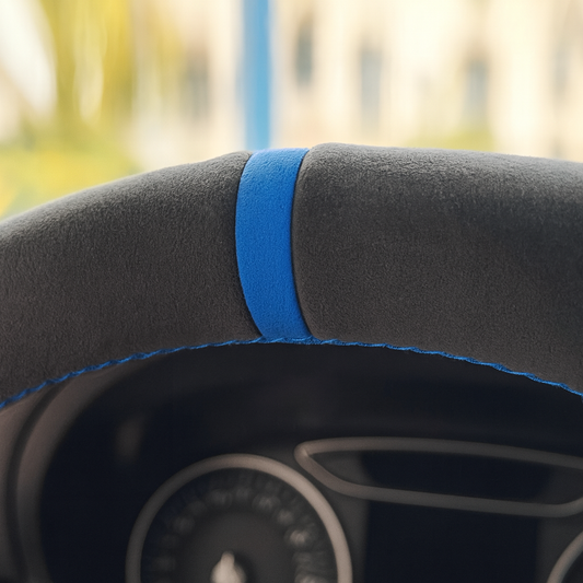 Performance Lenkradbezug - Alcantara + 12 Uhr Markierung blau - passend für BMW E60 E61 E62 E63 E64