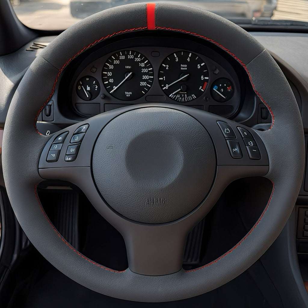 Performance Lenkradbezug - Alcantara + 12 Uhr Markierung rot - passend für BMW E46 E39