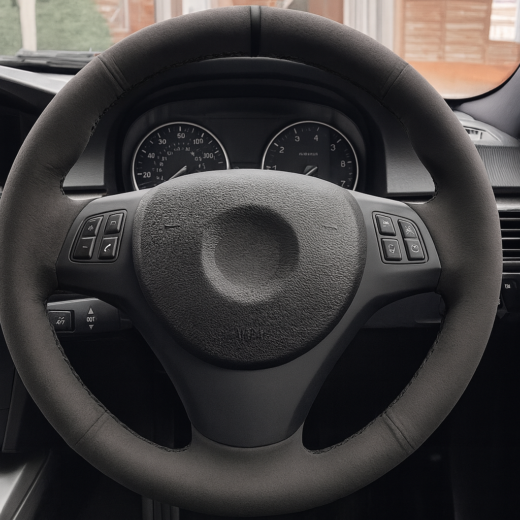 Performance Lenkradbezug - Alcantara mit 12 Uhr Markierung schwarz - passend für BMW E90 E91 E92 E93 E81 E82 E87 E88