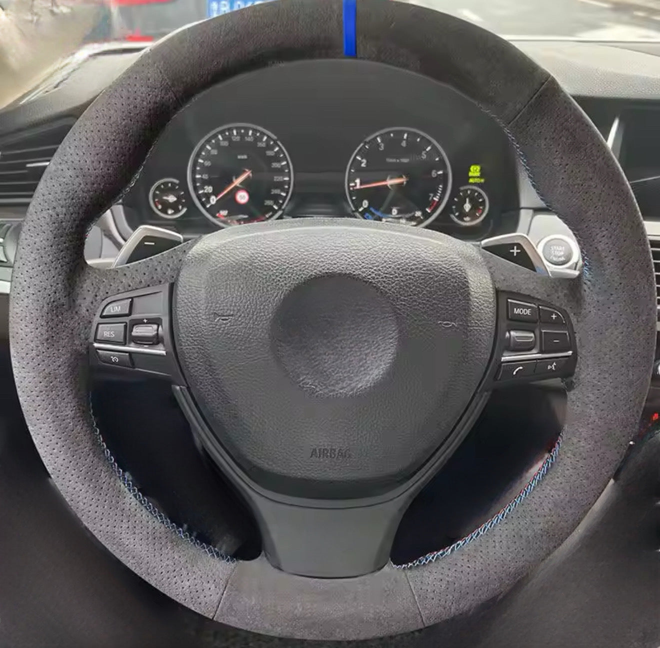 Performance Lenkradbezug - Alcantara perforiert + 12 Uhr Markierung blau - passend für BMW F20 F21 F45 F22 F23 F46 F30 F31 F34 F32 F33 F36 F10 F11 F07 F12 F06 F13 X1 F48 X2 F39 X3 F25 X4 F26 X5 F15 X6 F16