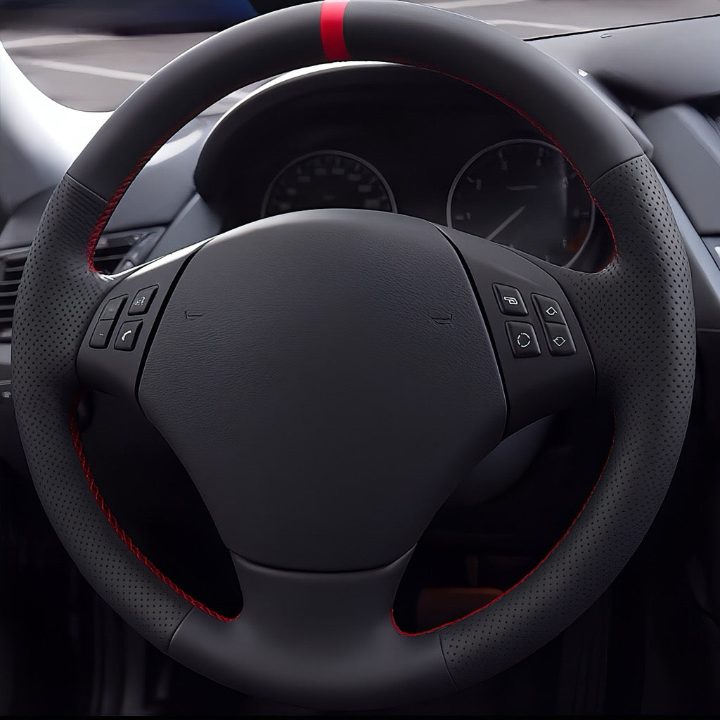 Performance Lenkradbezug - Leder glatt / perforiert + 12 Uhr Markierung rot - passend für BMW E90 E91 E92 E93 E81 E82 E87 E88